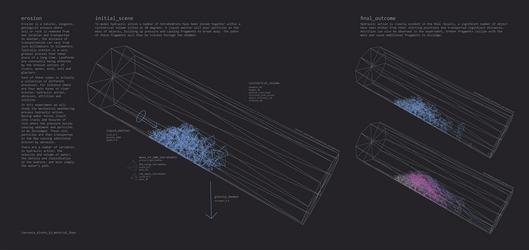 RealFlow is a particle simulation software typically used for generating photorealistic water in films. In order to model hydraulic action using RealFlow Laurence wrote a Node.js script to track objects as they move through the scene.